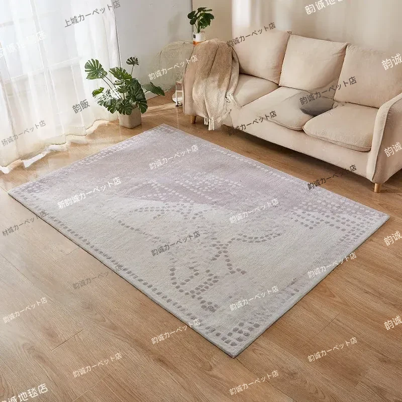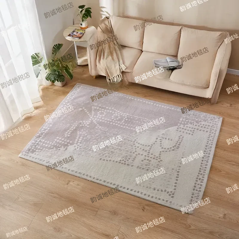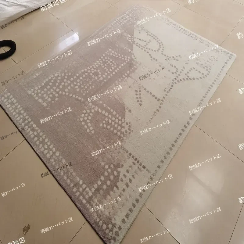 手作ミックス織りラグ - ロイヤルホースオートミールカラーの抽象デザイン、リビングルームやソファの下にぴったり!寝室やクローゼット、ベッドサイドにも最適な洗練されたインテリアアイテム。