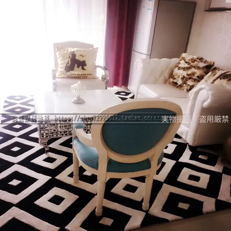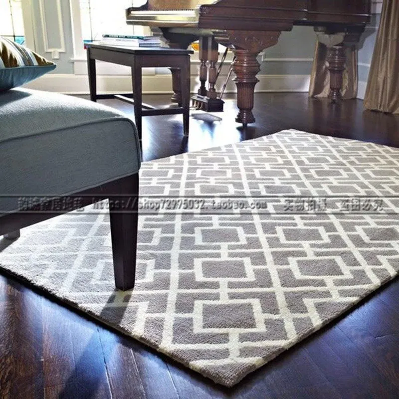 手作アクリル繊維ラグ - リビングルームや茶の間に最適な洗練された欧風デザイン!モダンなベッドサイドにもぴったりなアメリカンチェック柄で、快適な空間を演出します。