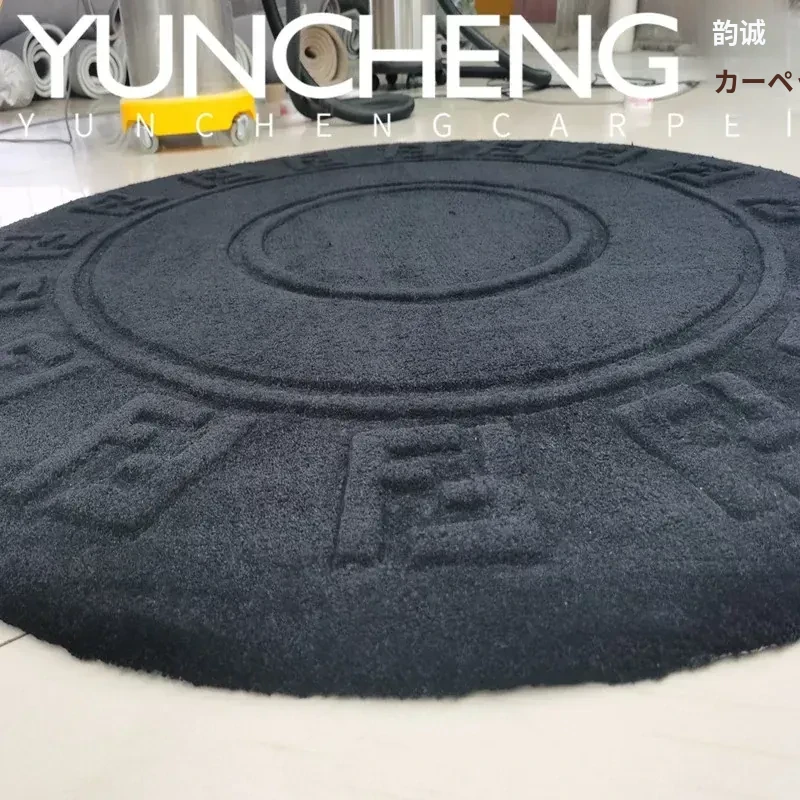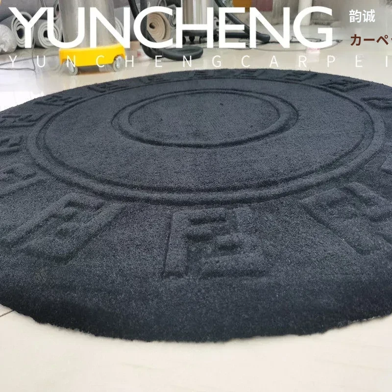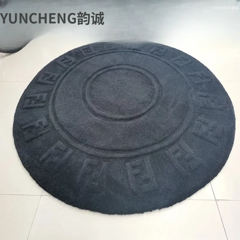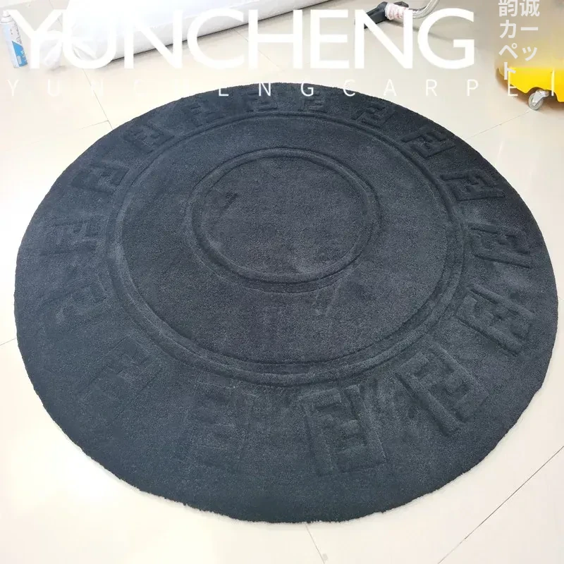 高級感溢れる軽やかな黒の立体円形リビングテーブルカーペット。欧米スタイルの寝室、書斎、クローゼット、ベッドサイドにぴったりのフルカバー!おしゃれで洗練された空間を演出します。