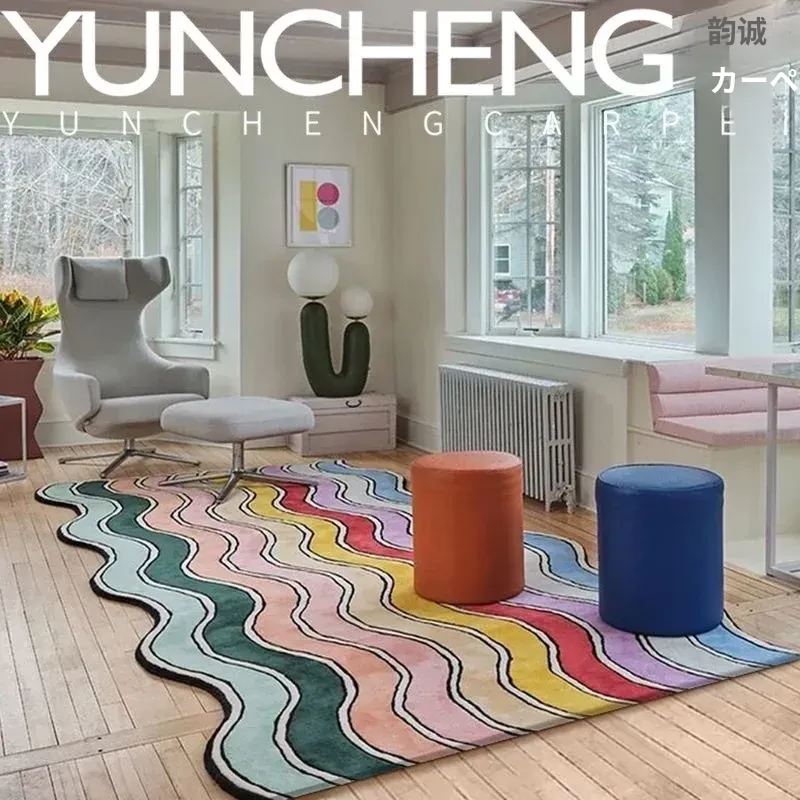 軽奢スタイルの欧米風カラフルな不規則デザインのリビング用コーヒーテーブルマット!イタリアンデザインのベッドルーム、書斎、クローゼット、ベッドサイド、ベッドフットにぴったりな大地毯!お部屋を華やかに演出します!