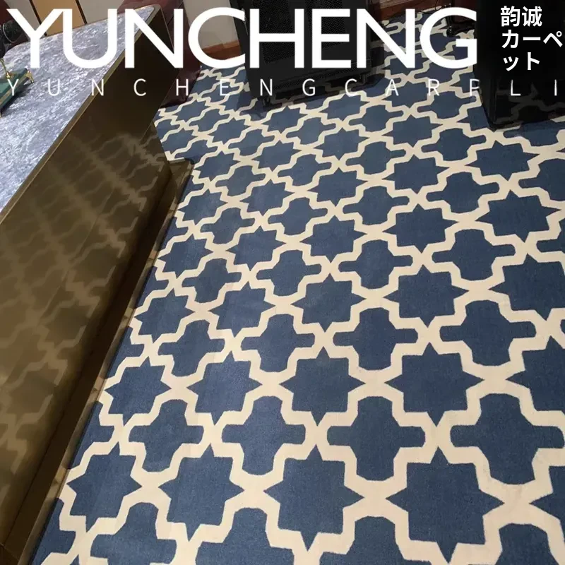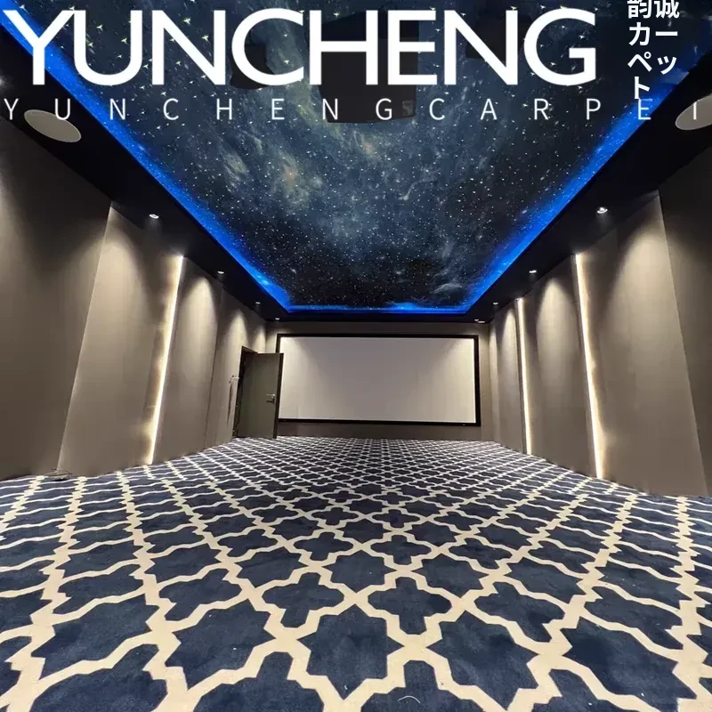 静音でラグジュアリーな欧米スタイルの青いチェック柄!リビングルーム、寝室、書斎、シアタールームに最適なカーペット。ベッドサイドやフルカバーにもぴったり!あなたの空間をおしゃれに演出します。