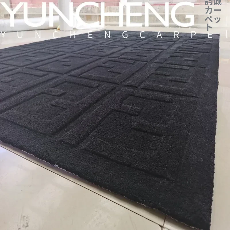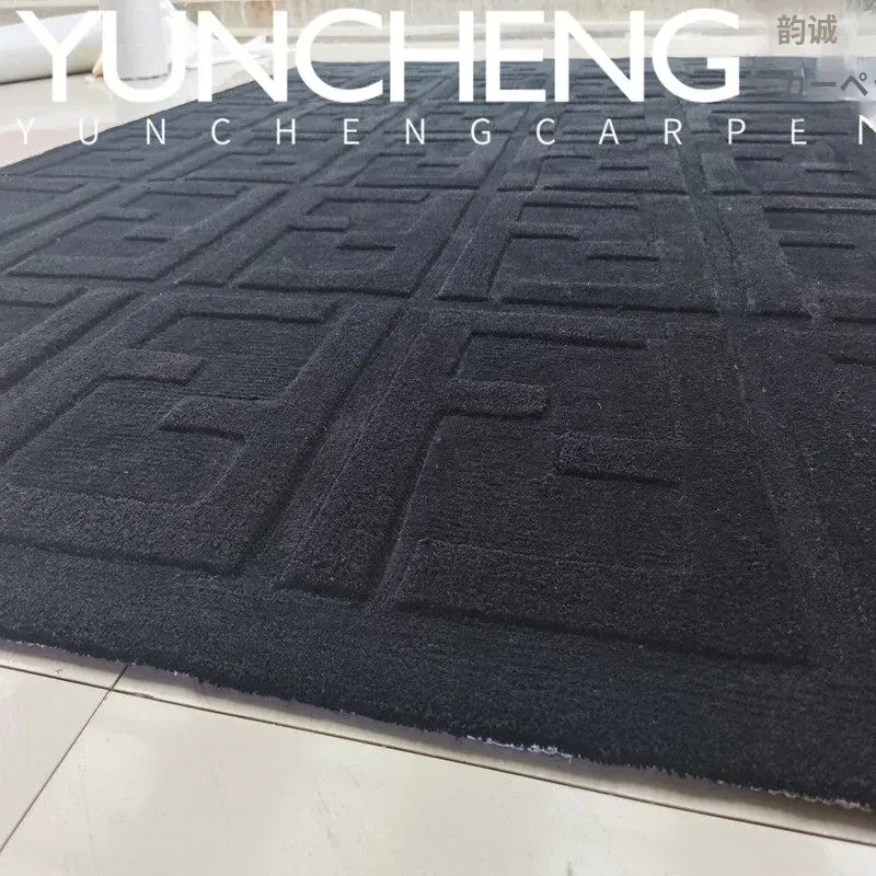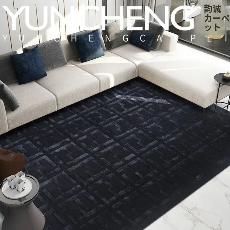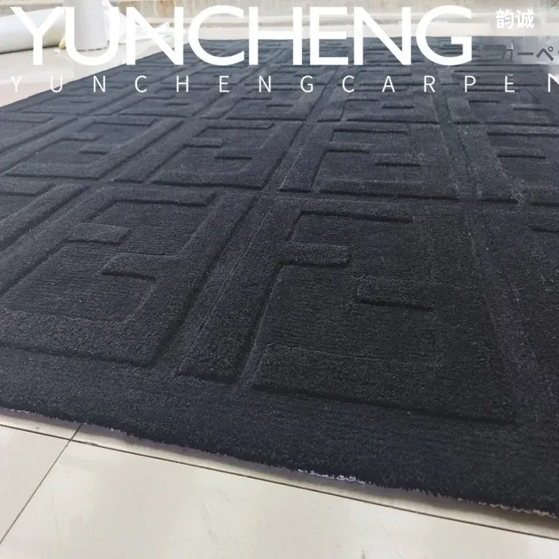 高級感溢れるイタリアンスタイルのブラック3Dカーペット!リビングや寝室、書斎、クローゼット、ベッドサイドに最適なラグ。軽やかな贅沢感で、あなたの空間を格上げします。