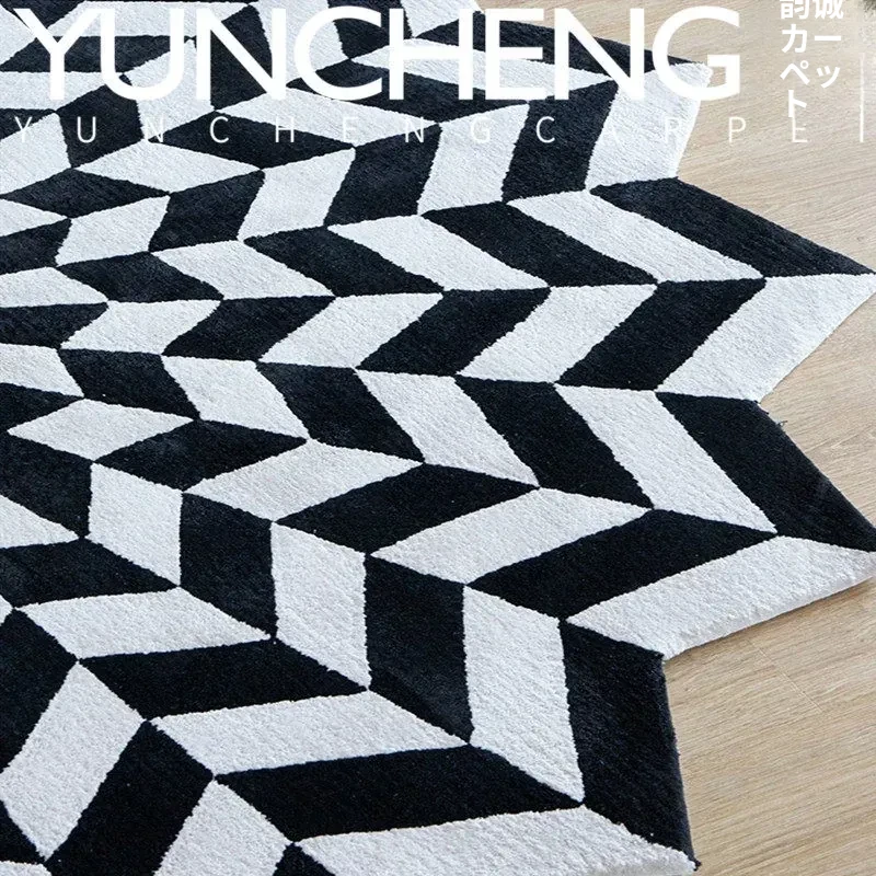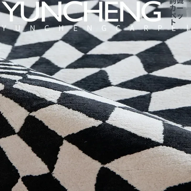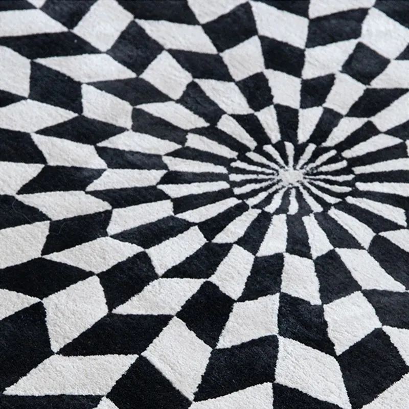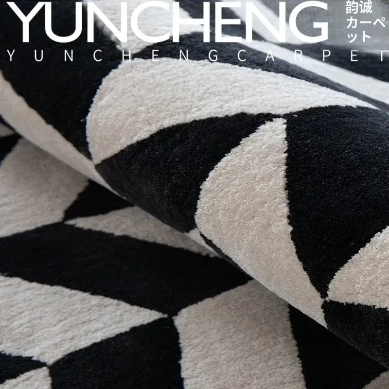 シンプルなモノクロ円形デザインの欧米風軽奢コーヒーテーブルラグ!イタリアンスタイルの寝室や書斎、クローゼット、ベッドサイドにも最適。おしゃれで洗練された空間を演出するアイテムです。