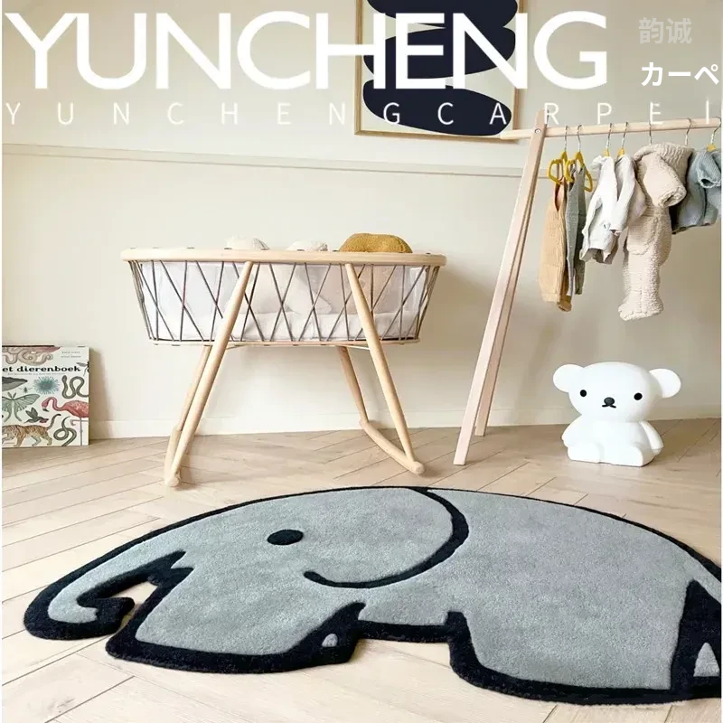 シンプルでラグジュアリーな欧米スタイルのグレーの象柄子供用リビングテーブルマット!イタリアンデザインの寝室、書斎、クローゼット、ベッドサイドにぴったりのカーペット。おしゃれで快適な空間を演出します!