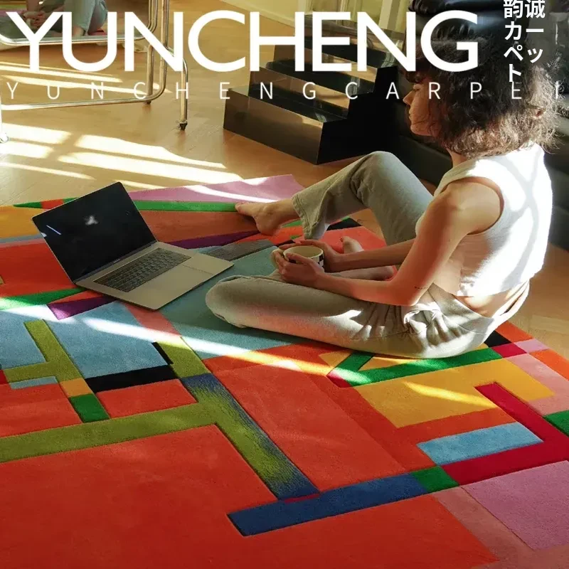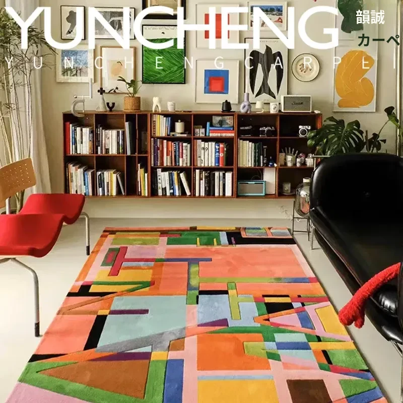 モダンでスタイリッシュなカラフルなラグ - ヨーロッパ・アメリカンデザインのリビングルーム用コーヒーテーブルマット、寝室や書斎、クローゼットのベッドサイドにも最適!あなたの空間に華やかさと快適さをプラスします。