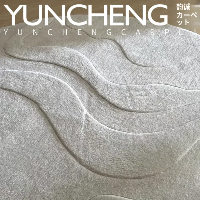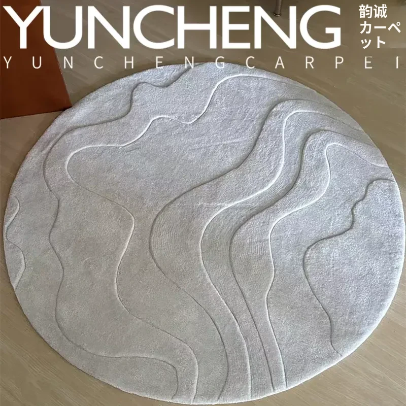 現代的なラグジュアリー感漂う米色の立体円形カーペット - 高級リビングや寝室、書斎、クローゼットに最適!ベッドサイドにもぴったりなスタイリッシュなデザイン。あなたの空間に上品さをプラスします!