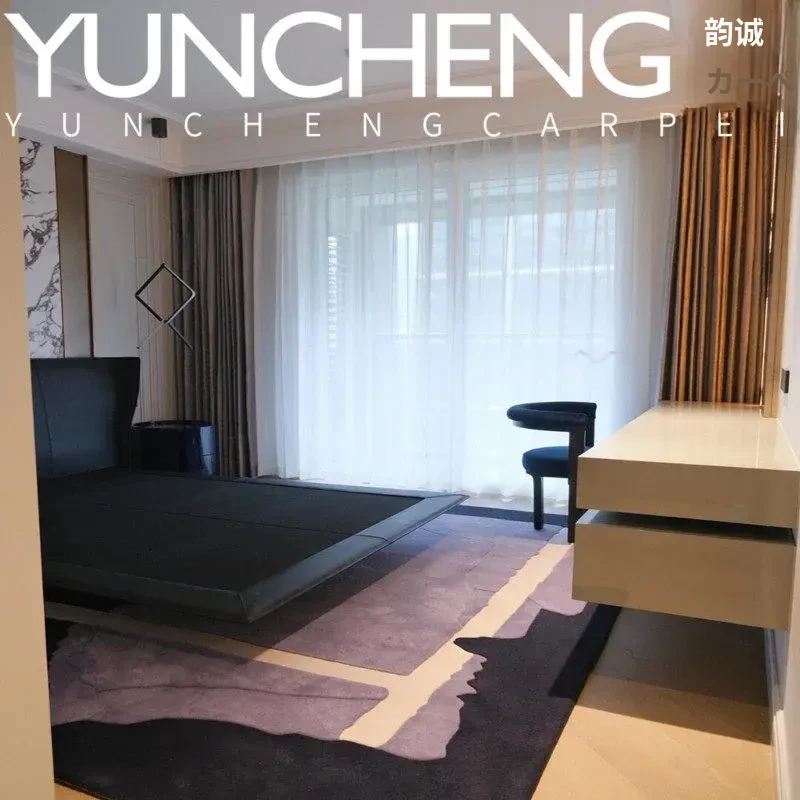 現代的なラグジュアリーリビングテーブル用紫色ラインラグ - 欧米スタイルの白黒の層次感。寝室や書斎、クローゼット、ベッドサイドにぴったりの魅力的なデザイン!