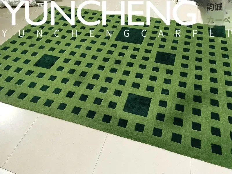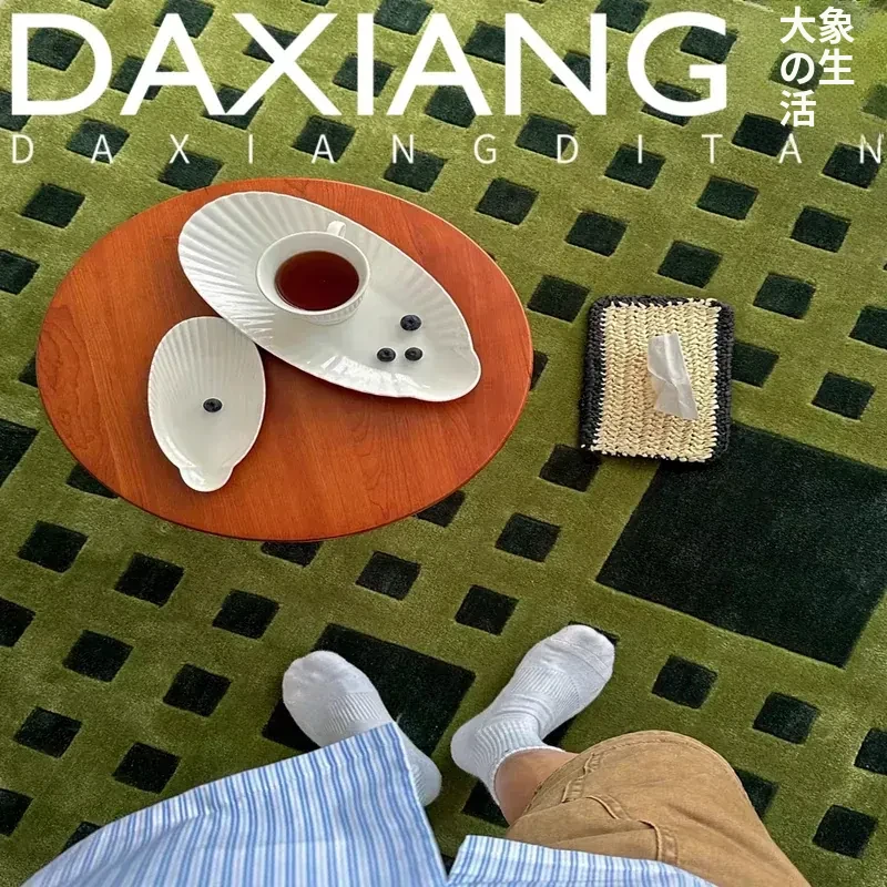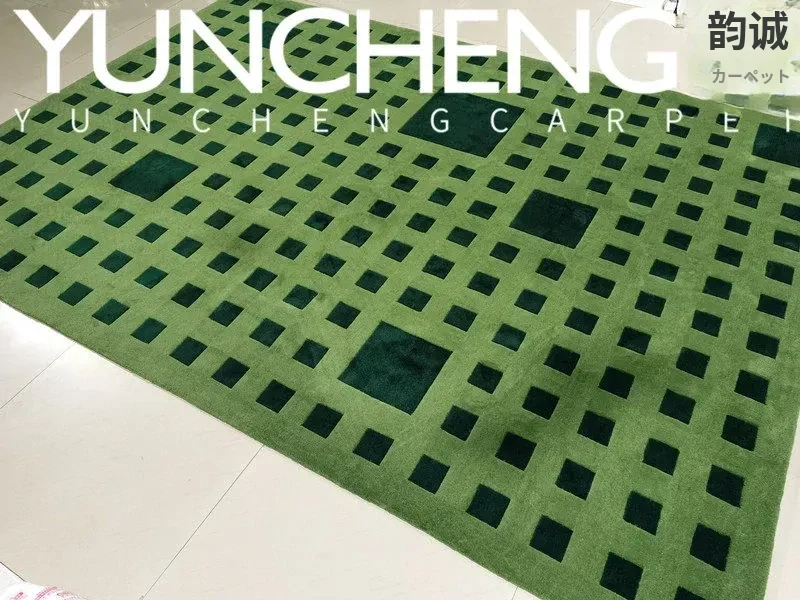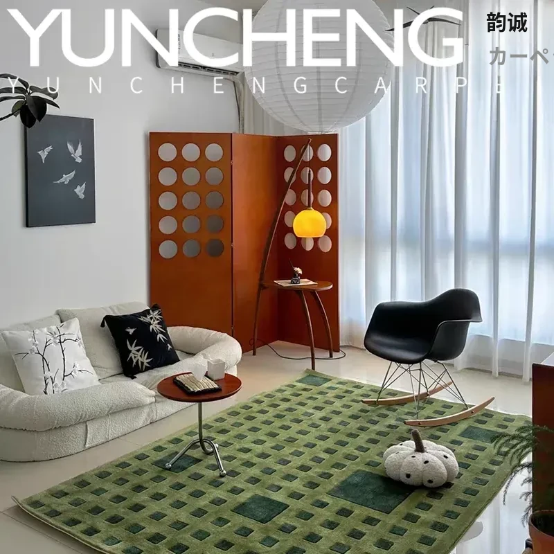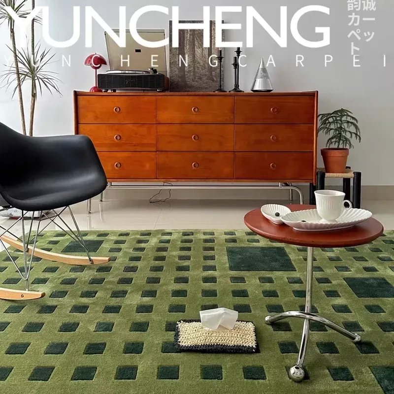 モダンな軽奢スタイルの欧米風レトログリーンチェック柄リビングティーテーブル用ソファマット、寝室・書斎・クローゼット・ベッドサイドにぴったりのカーペット!おしゃれで機能的なインテリアを実現します!