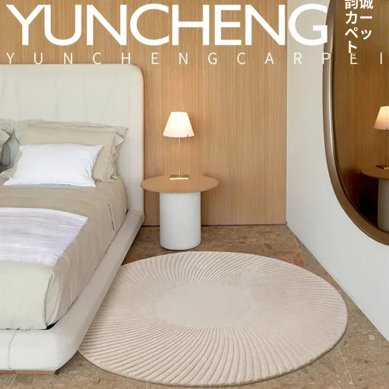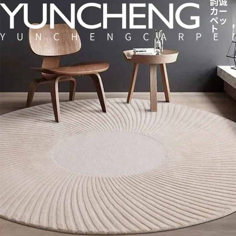 モダンなライトラグジュアリー 北欧風 立体的なアイボリー模様のラウンドコーヒーテーブルカーペット リビングルーム・寝室・書斎・クローゼット・ベッドサイドに最適なラグ