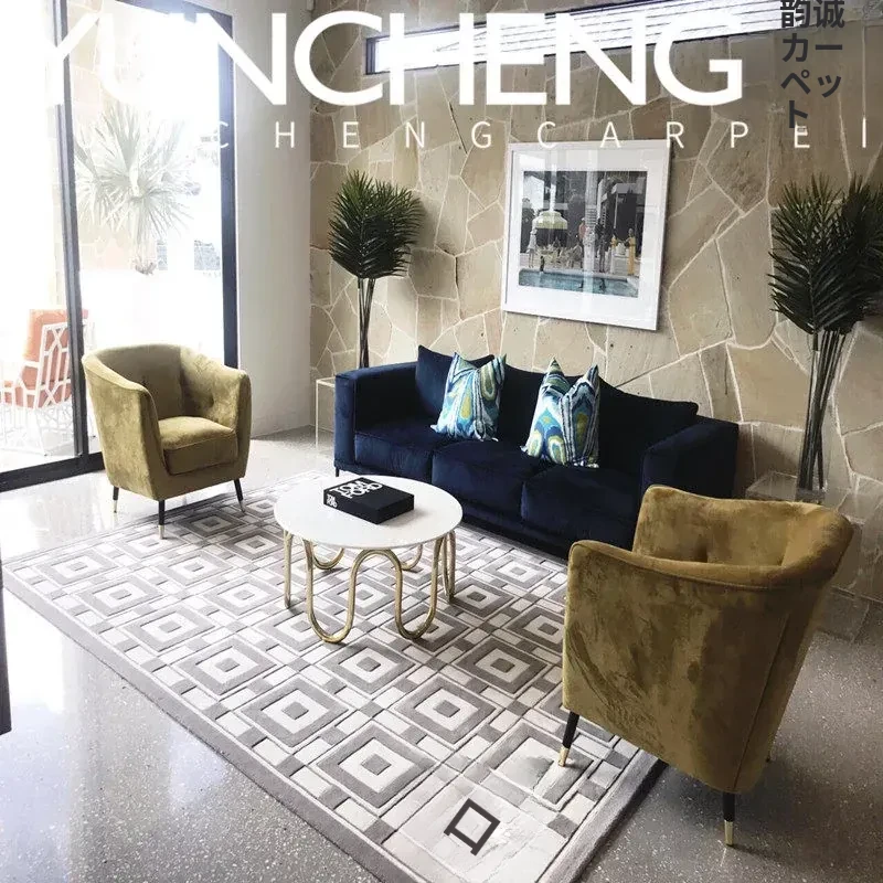 現代的ラグジュアリーな欧風チェック柄ジオメトリックデザインのリビング用コーヒーテーブルマット、アクリル製で寝室や書斎、クローゼット、ベッドサイドにも最適!あなたの空間に洗練された魅力をプラス!