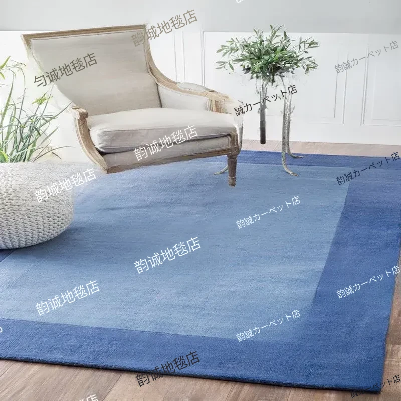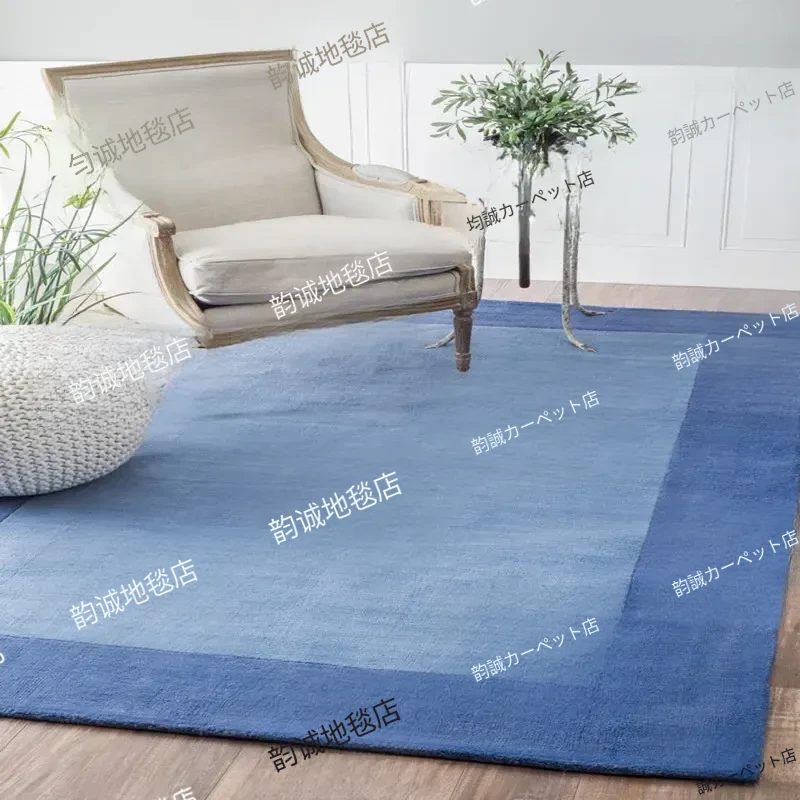 モダンでシンプルなブルーのデザインラグ - リビング、寝室、書斎に最適な手作りカーペット!テーブルやベッドの足元にぴったり、クローゼットや玄関にも映えるスタイリッシュなインテリア。