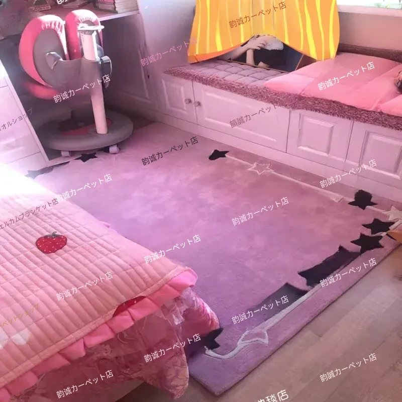 モダンシンプルなピンクの少女向けラグ リビングやテーブルの下にぴったり!お子様部屋やベッドサイドに最適なハンドメイドカーペットで、居心地の良い空間を演出します。