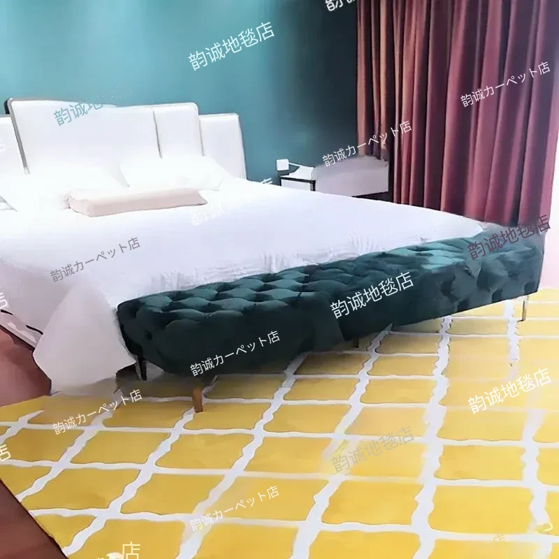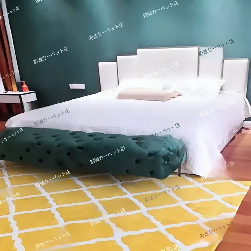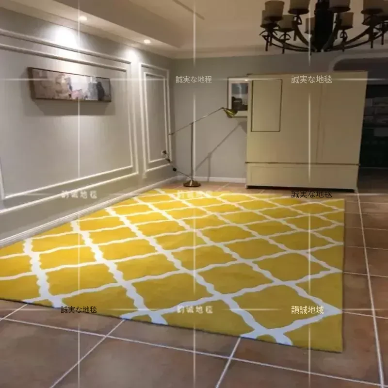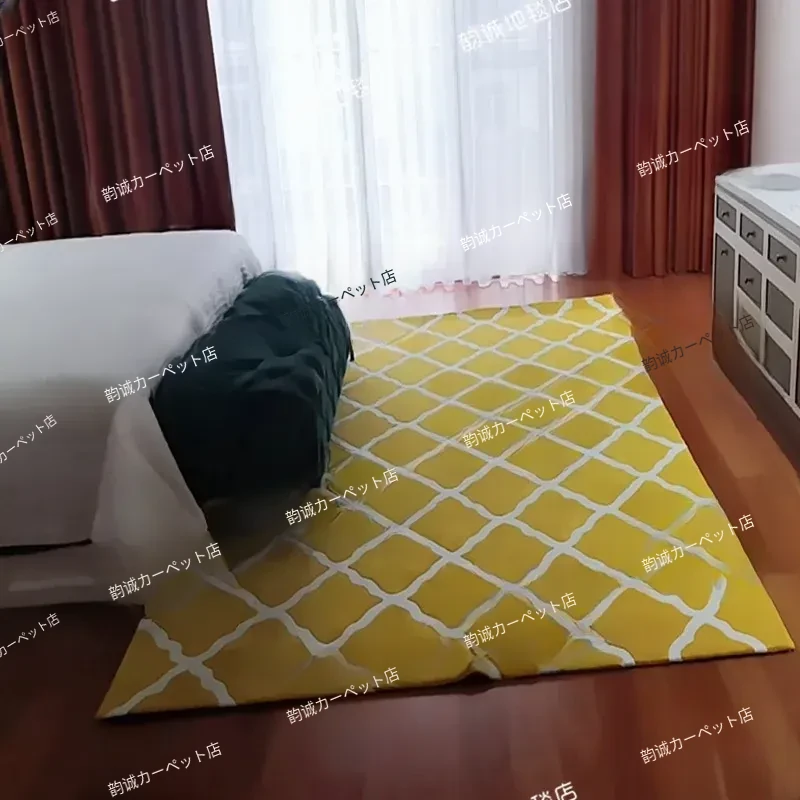 現代的シンプルな黄色チェック柄のリビング用ラグマット、アメリカンスタイルの寝室用ベッドサイドラグ。写真映えも抜群な合成繊維アクリルカーペットで、お部屋を華やかに演出!