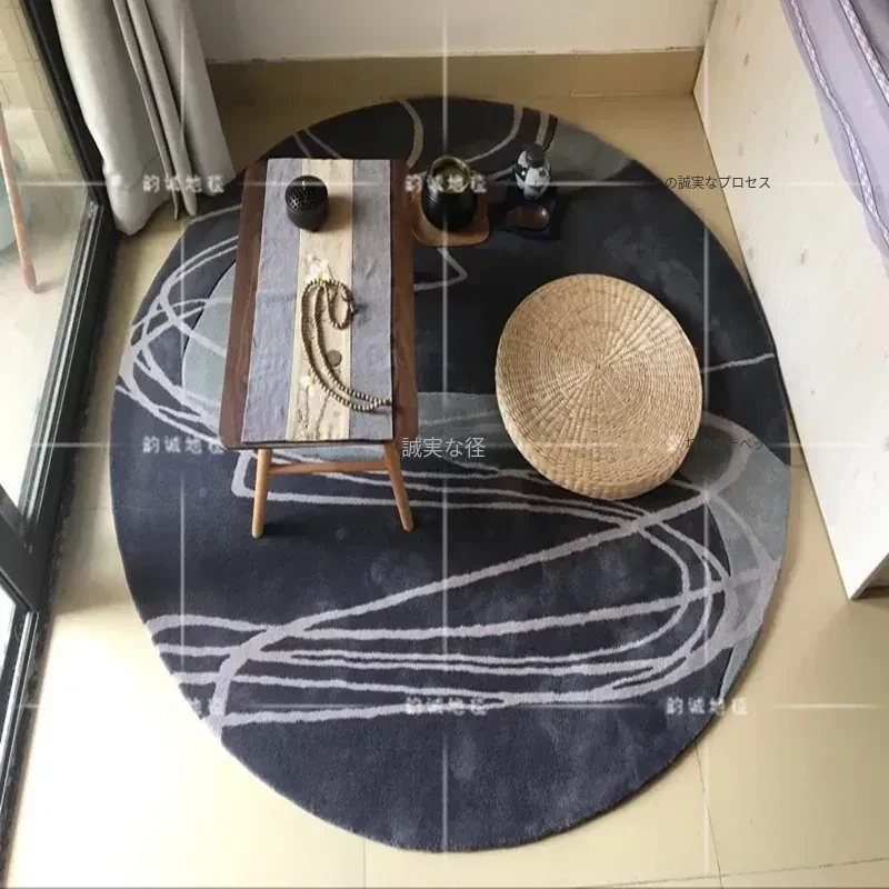 北欧スタイルの円形ラグ - 抽象ストライプデザイン、リビングルームやティーテーブルに最適!アメリカンスタイルのベッドサイドにもぴったり、化学繊維の高品質ラグでお部屋をおしゃれに演出!