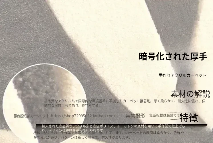 インスタ映えする欧米スタイルのモデルルーム用リビングテーブル、寝室用ラグ、書斎やベッドサイドにぴったりな手作りカーペット。おしゃれで快適な空間を演出!