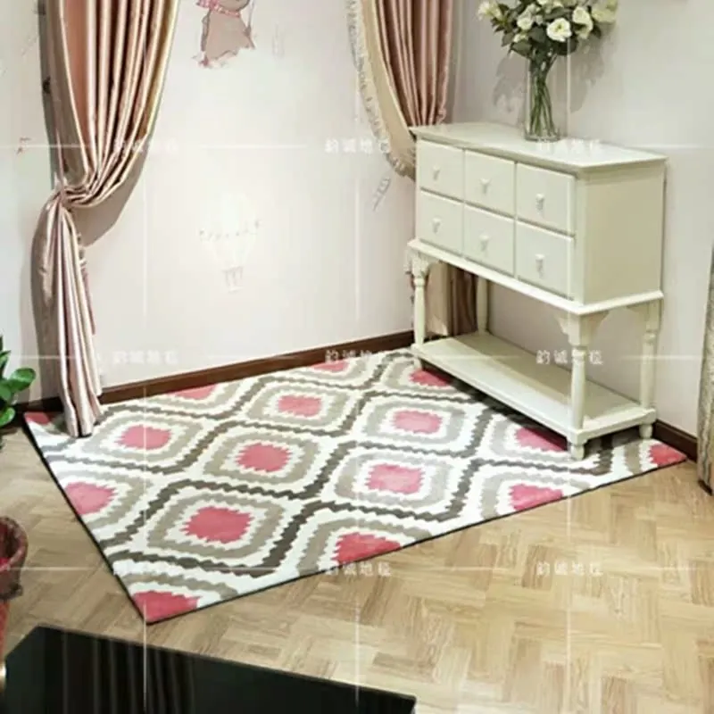 スタイリッシュな欧米スタイルのモデルルーム!リビングにぴったりなソファ、テーブル、カーペット、そしてベッドサイドに最適な手作りアクリルカーペットで、あなたの空間を華やかに演出します。