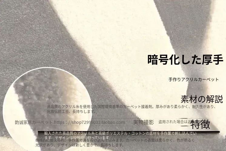 スタイリッシュな欧米風ミニマリストカーペット - リビングルームやソファの下、寝室のベッドサイド、書斎にもぴったりの手作りカーペット。快適さと美しさを兼ね備えた空間作りに最適!