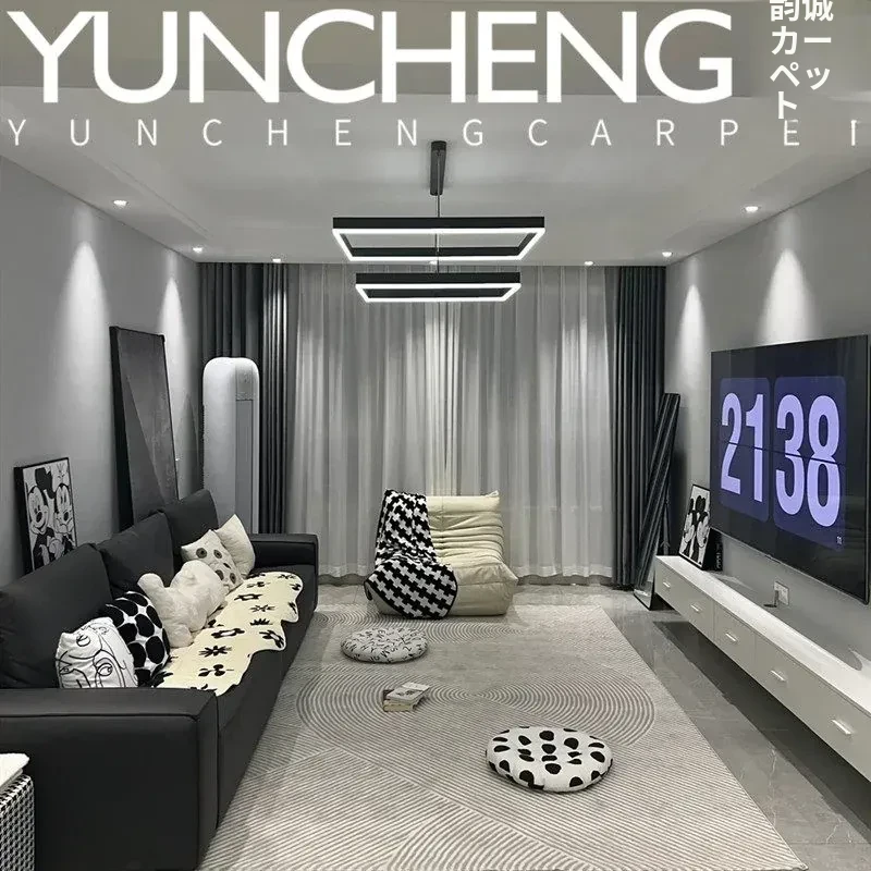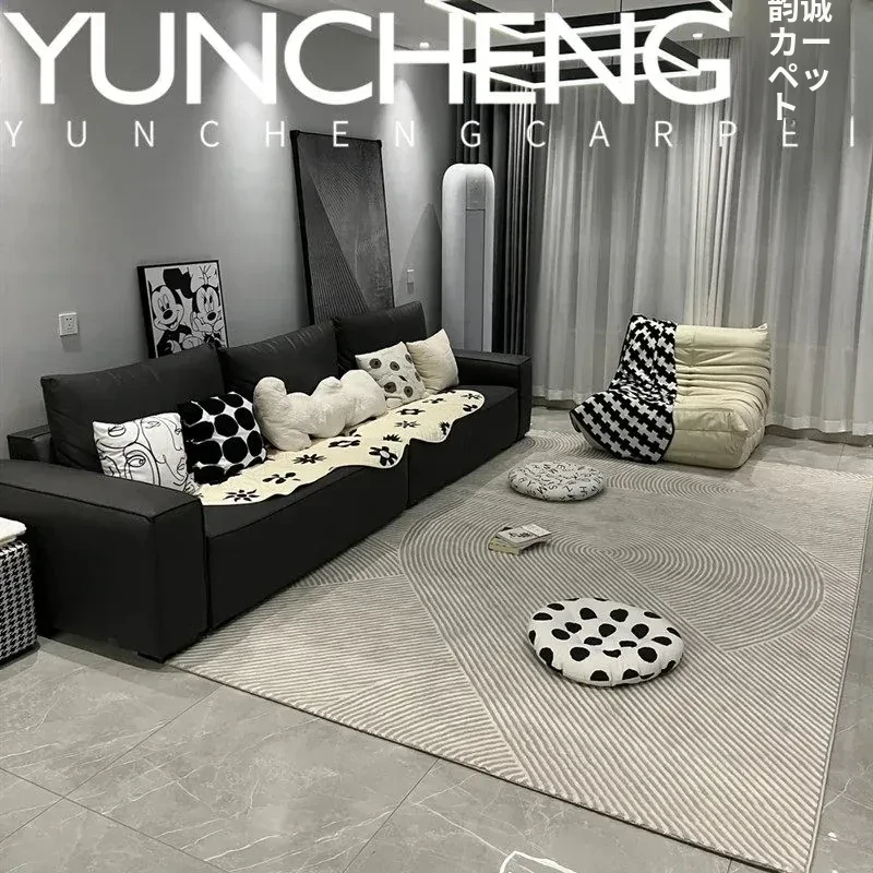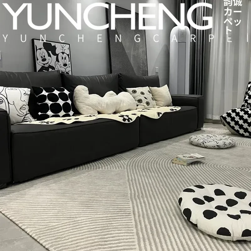 スタイリッシュなライトラグジュアリー グレー&ホワイトストライプ デザインのリビングルーム用コーヒーテーブルカーペット。イタリアンスタイルの寝室、書斎、ウォークインクローゼット、ベッドサイドにぴったりのフルカバーラグ!