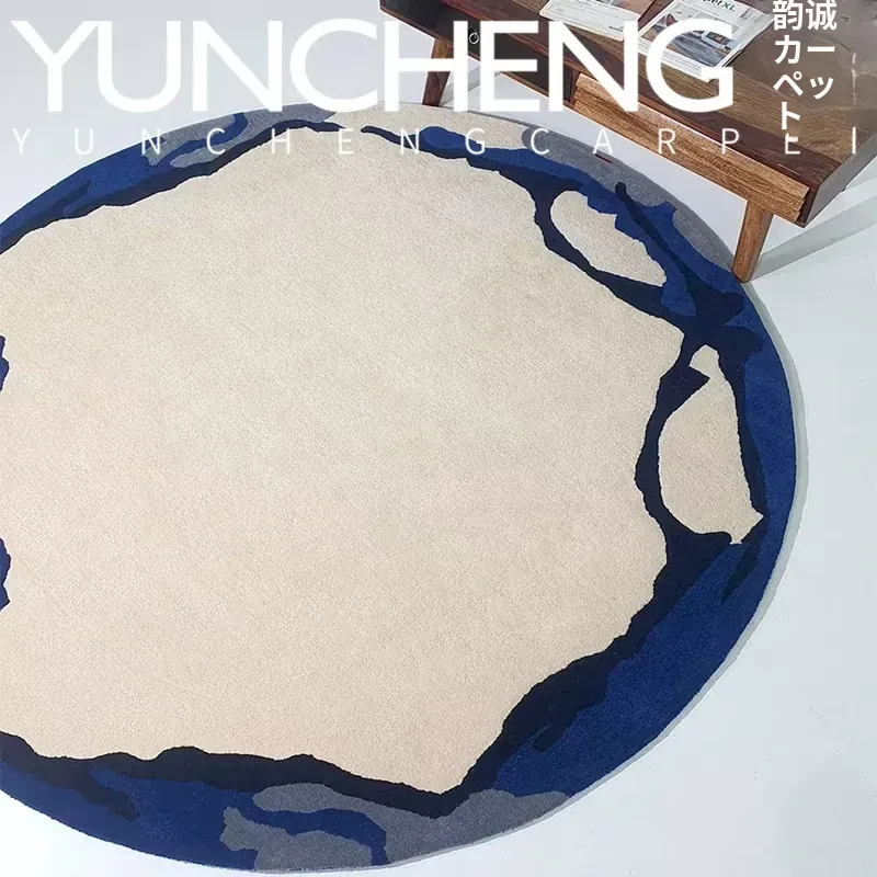 おしゃれでラグジュアリーなデザインのモダンフレンチスタイル、洗練された青の円形リビング用コーヒーテーブルカーペット。寝室や書斎、クローゼット、ベッドサイドにもぴったりのアイテムです!