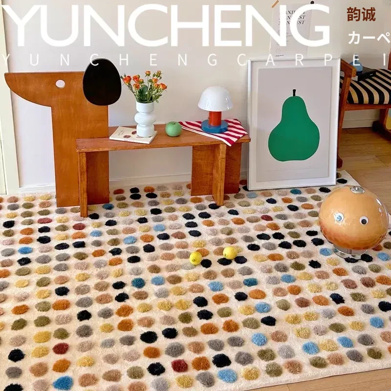 モダンなカラフルなドーパミン立体ドットラグ - 欧米スタイルのリビングルームや寝室、書斎、クローゼット、ベッドサイドにぴったり!おしゃれで心を弾ませるデザインをお楽しみください。