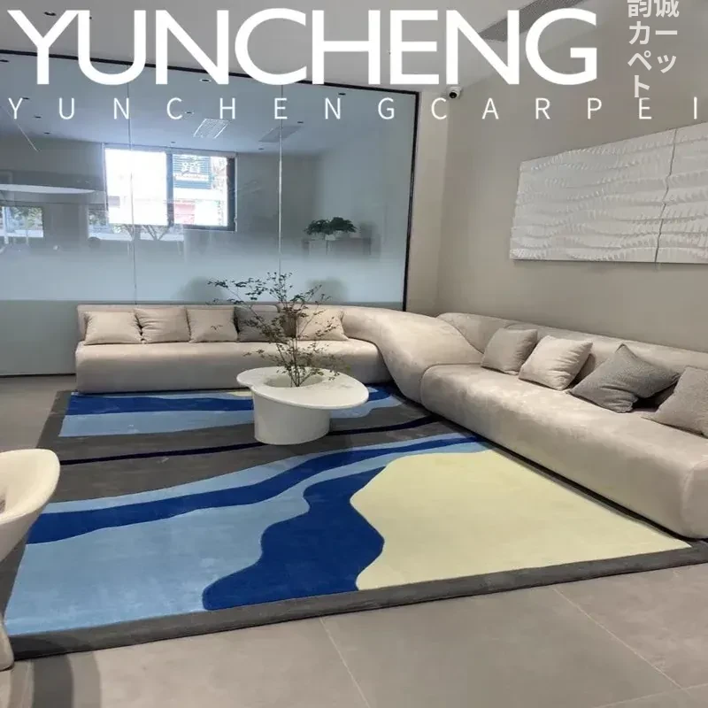 現代的なラグジュアリー感漂うブルーのレトロシンプルなリビングルーム用コーヒーテーブルカーペット。寝室、書斎、クローゼット、別荘のベッドサイドにぴったりなデザインです。心地よい空間を演出します!