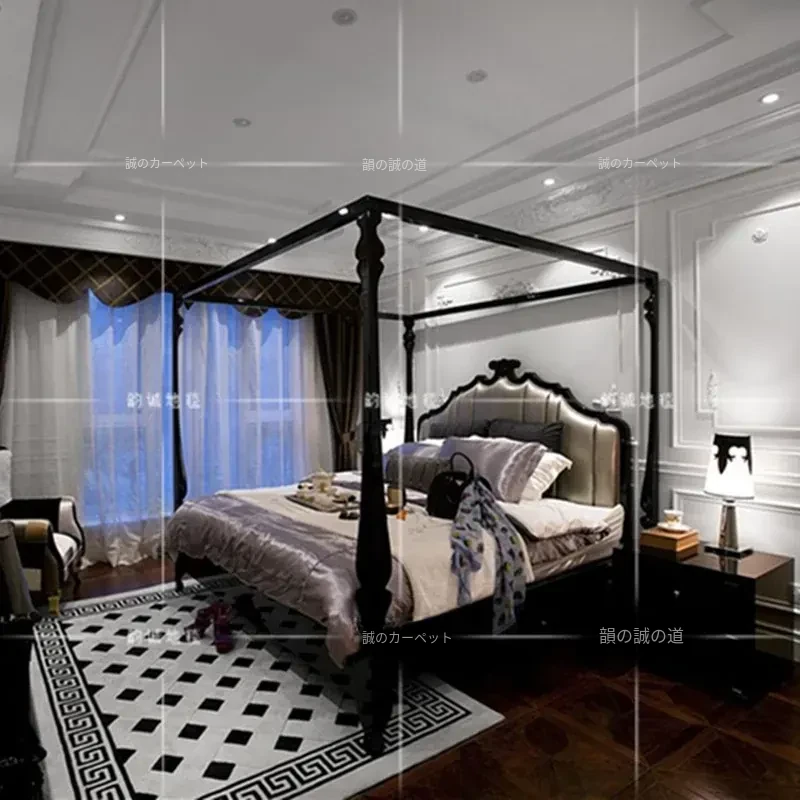 現代欧米風不規則デザインのブラック立体リビングテーブルカーペット、ラグジュアリーな寝室・書斎・クローゼットに最適なベッドサイドマット